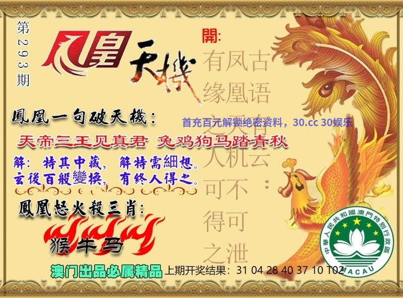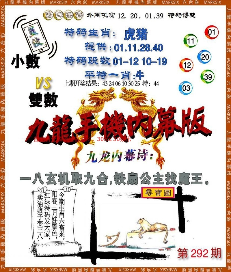 292期⑨肖鼠狗虎猪鸡猴牛蛇开:龙02准