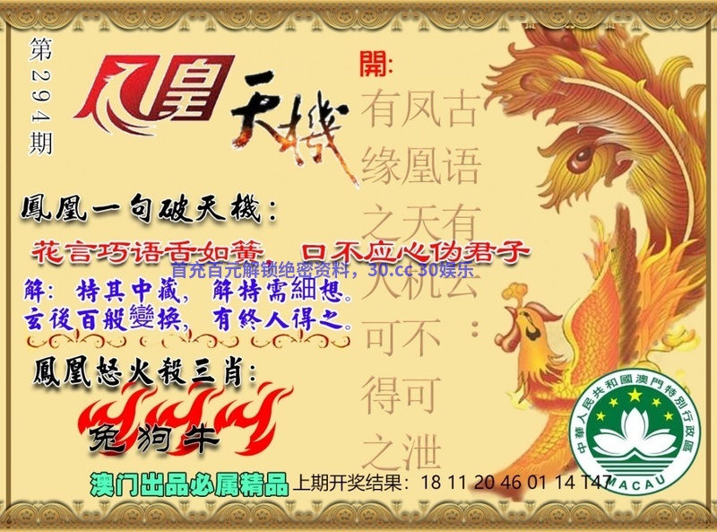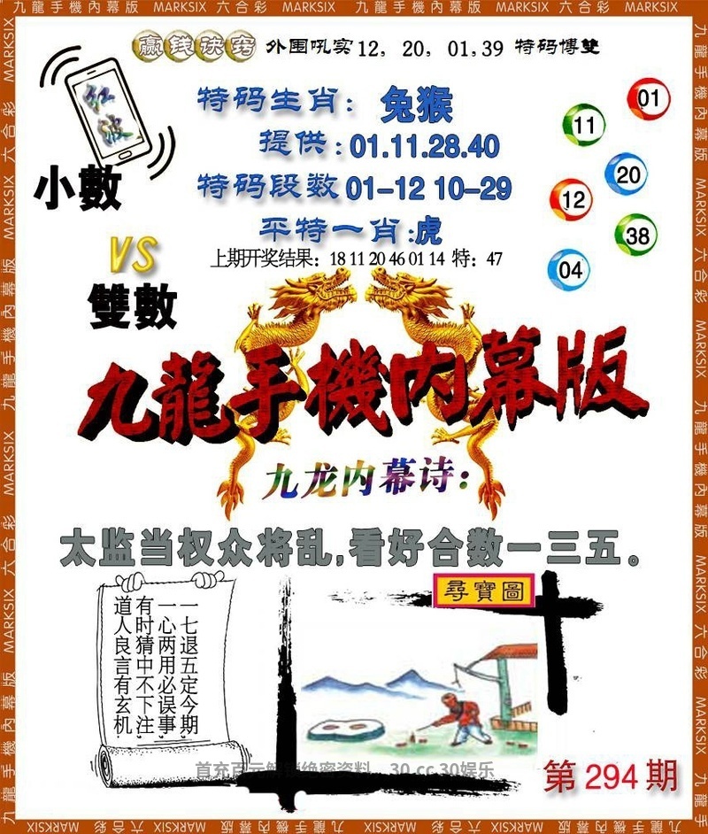 294期⑨肖【虎龙马蛇羊猴猪牛开:鼠18准